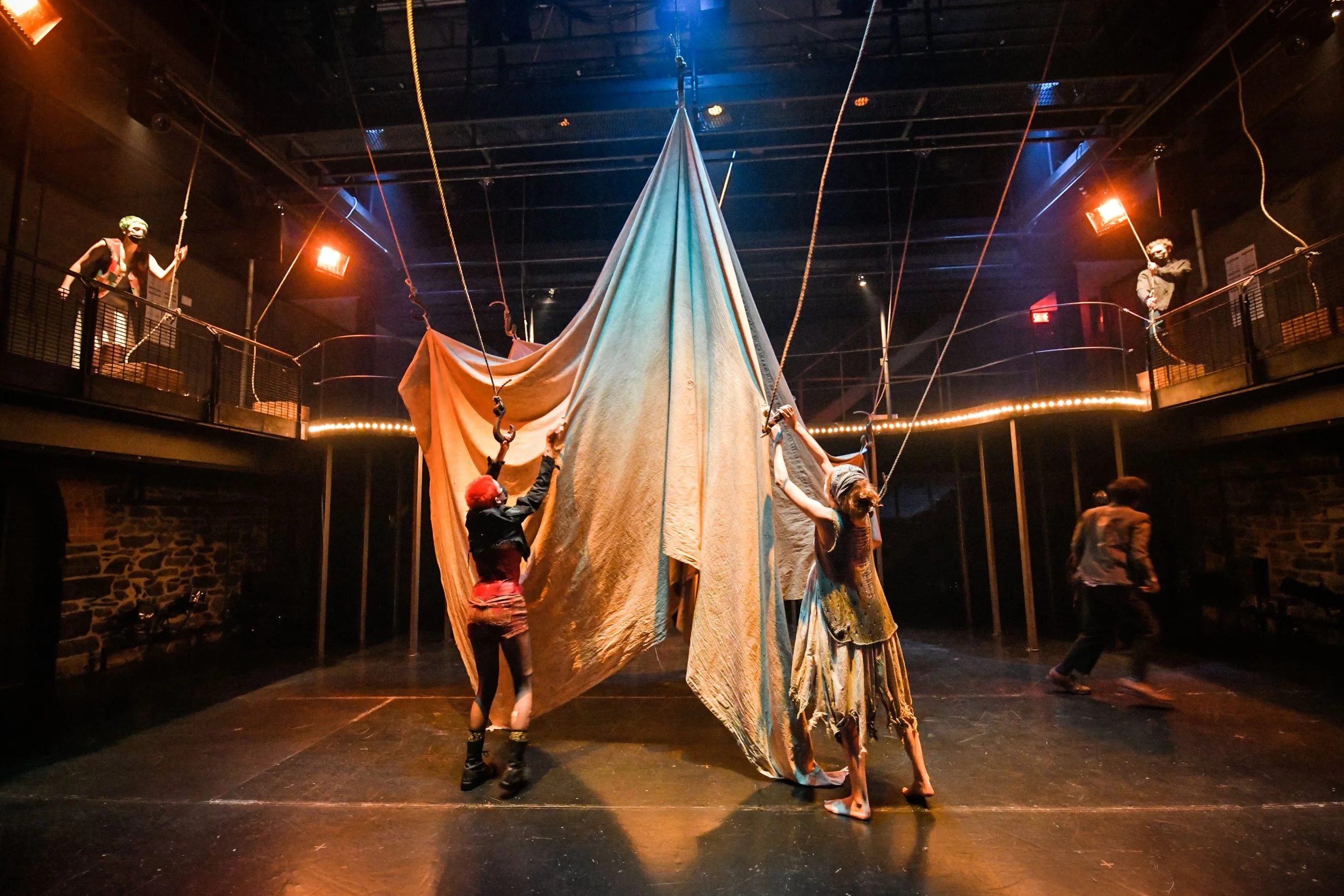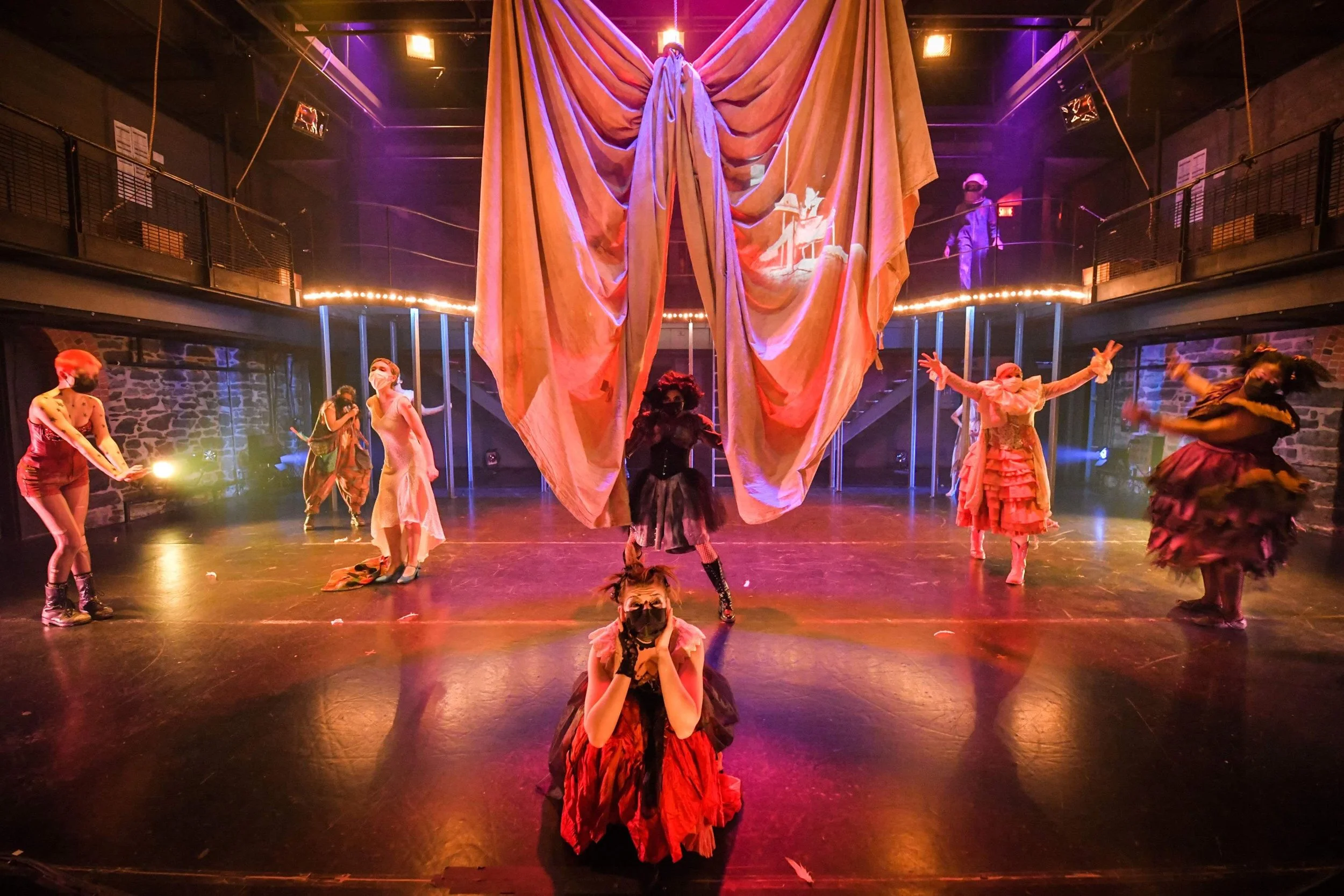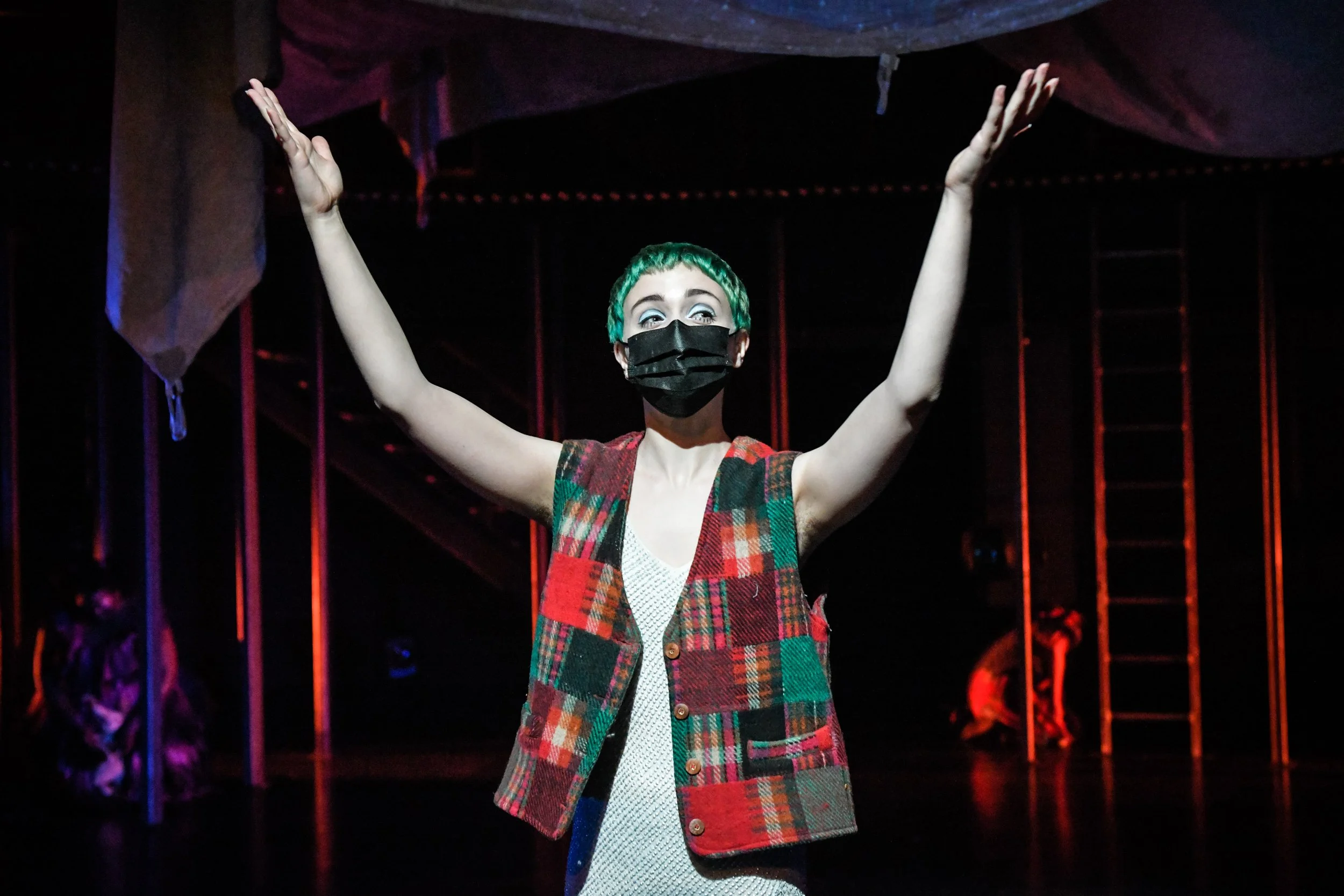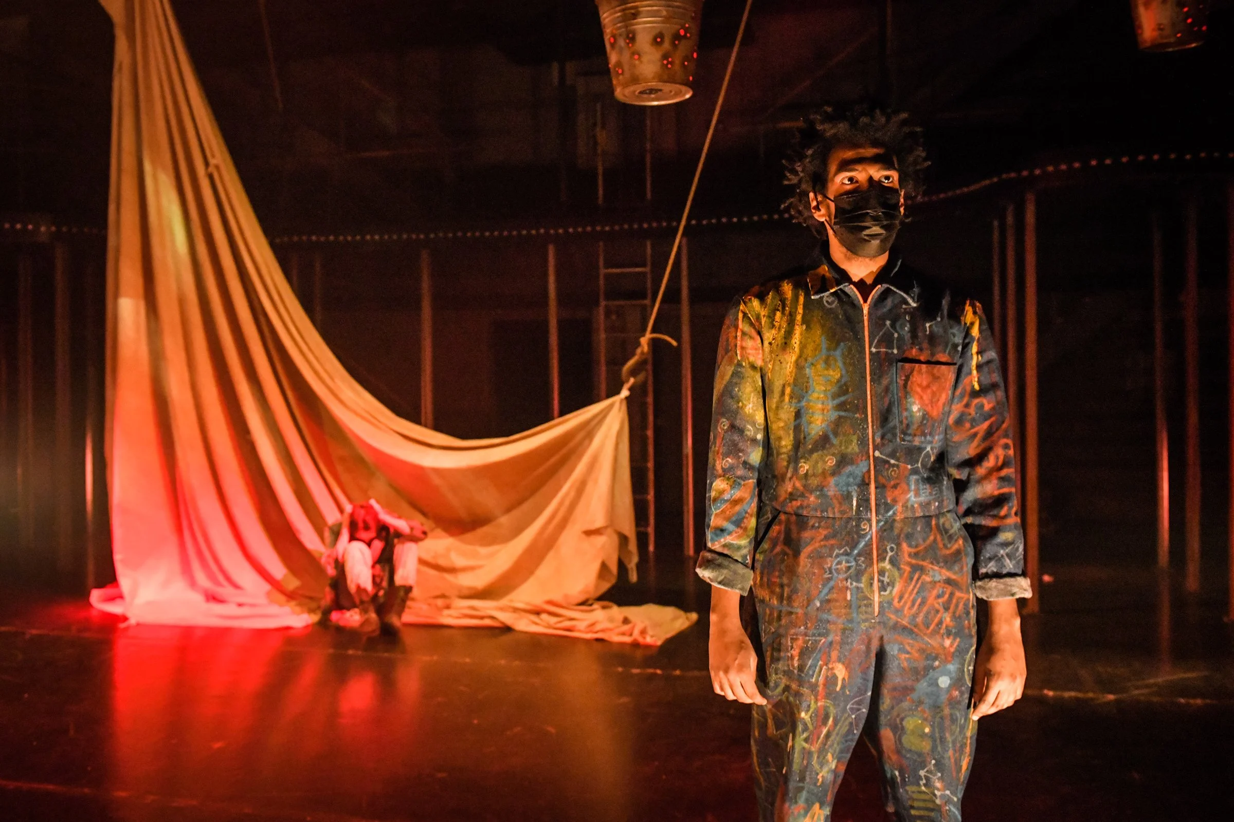 To Those Who Wait in Fear is a devised theatre piece that was co-written by the 2021 graduating acting class at the National Theatre School of Canada. After a three year process of offerings and explorations (led by ahdri zhina mandiela) we were able to create a circus underworld that explored the different ways in which we all experience fear, how it overpowers us, and our abilities/inabilities to conquer them.