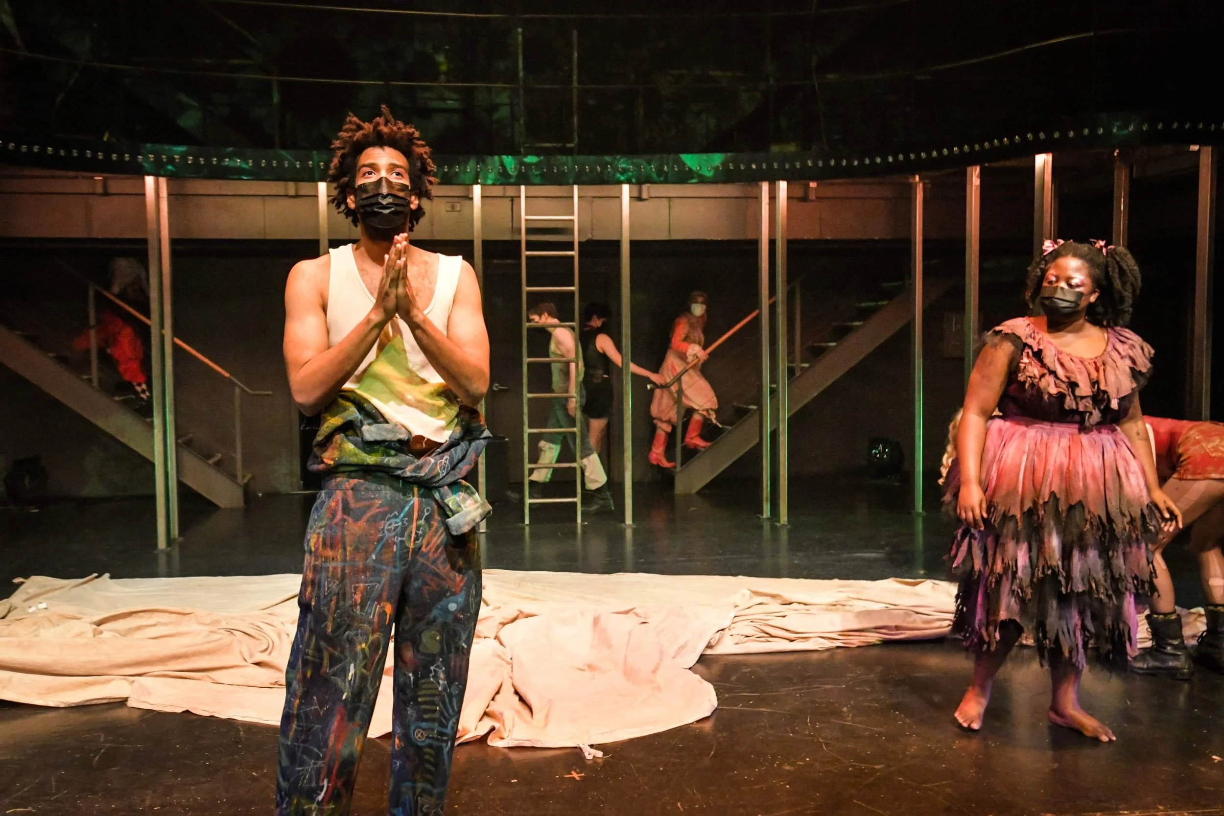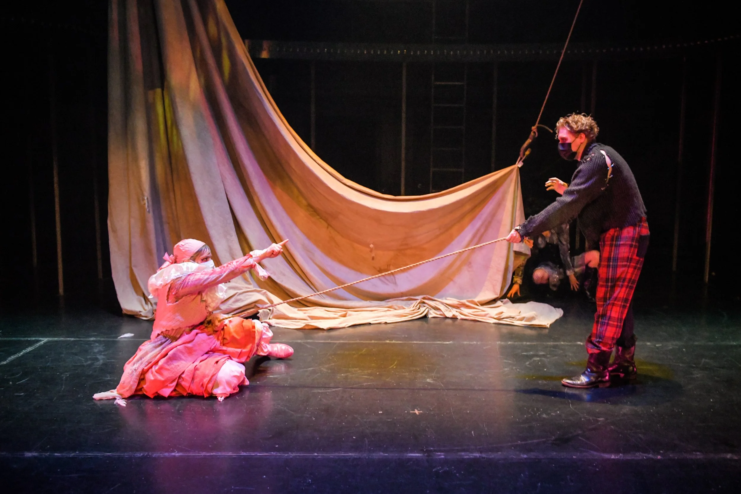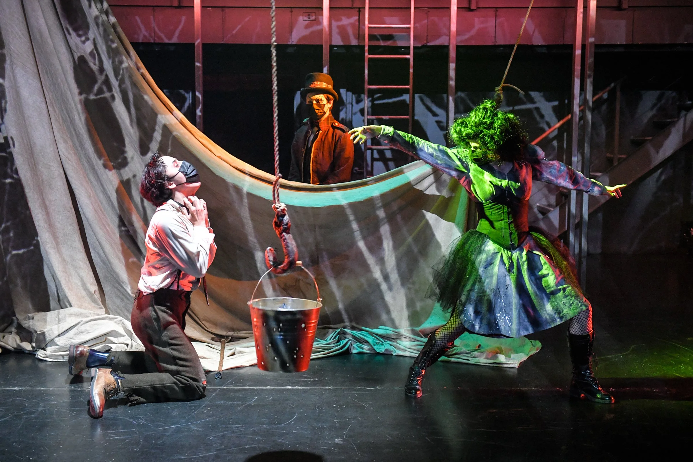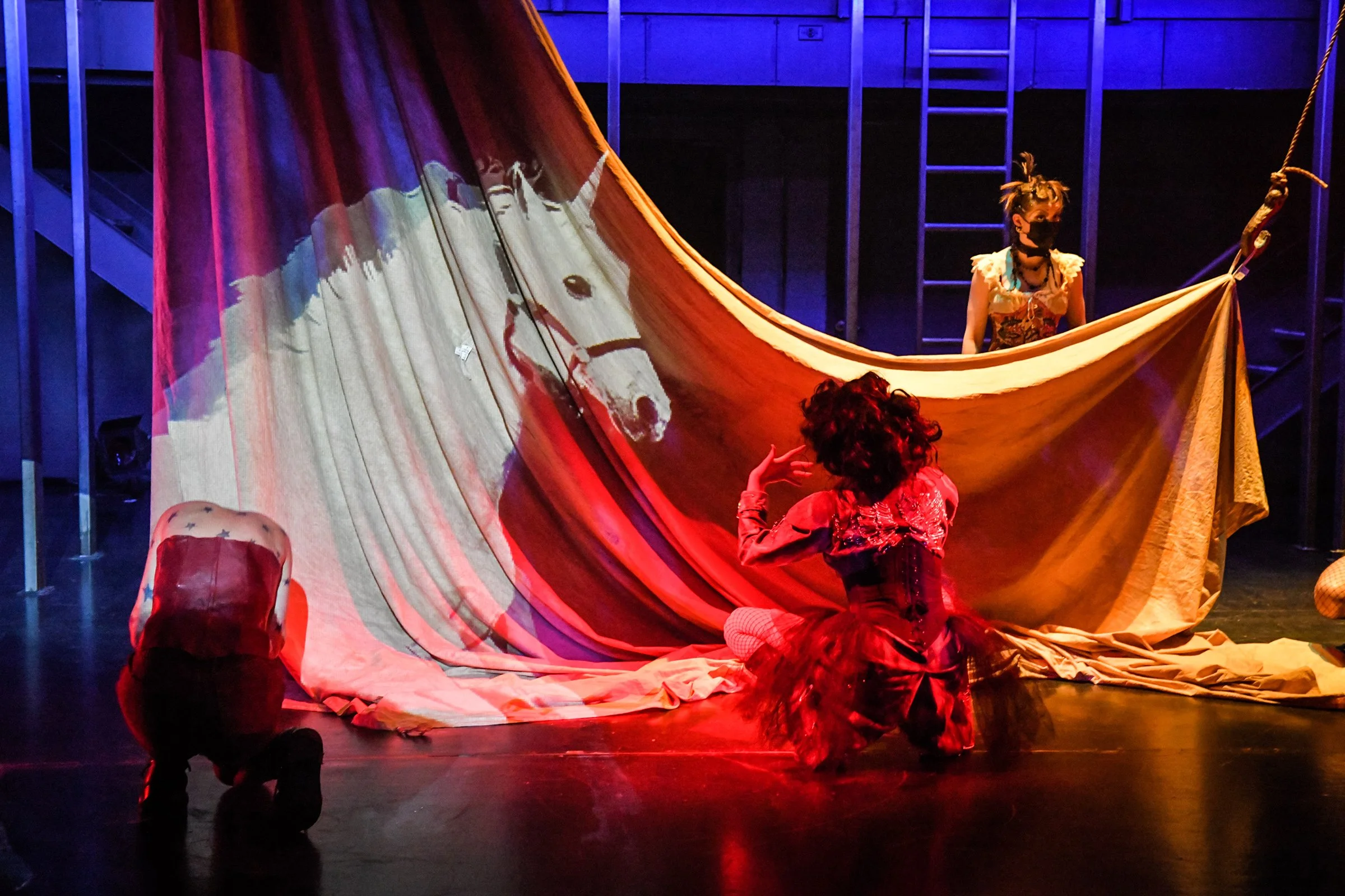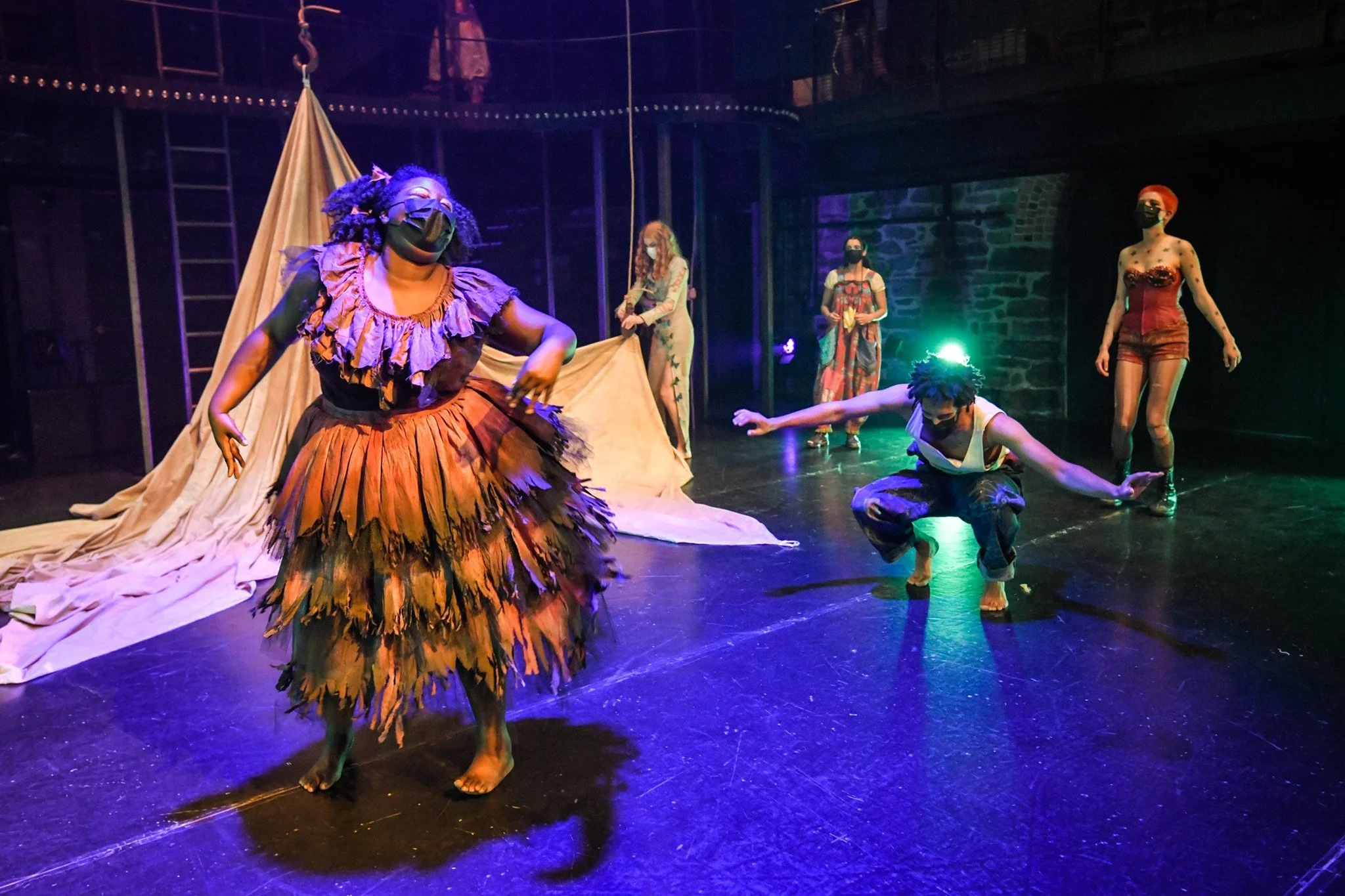 To Those Who Wait in Fear is a devised theatre piece that was co-written by the 2021 graduating acting class at the National Theatre School of Canada. After a three year process of offerings and explorations (led by ahdri zhina mandiela) we were able to create a circus underworld that explored the different ways in which we all experience fear, how it overpowers us, and our abilities/inabilities to conquer them.